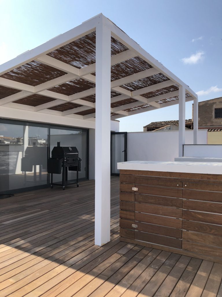 Se transformó la terraza en un espacio que combina estética, confort y funcionalidad, utilizando materiales resistentes, iluminación cuidada y mobiliario adaptado para disfrutarla durante todo el año.